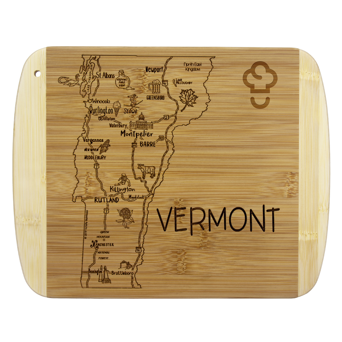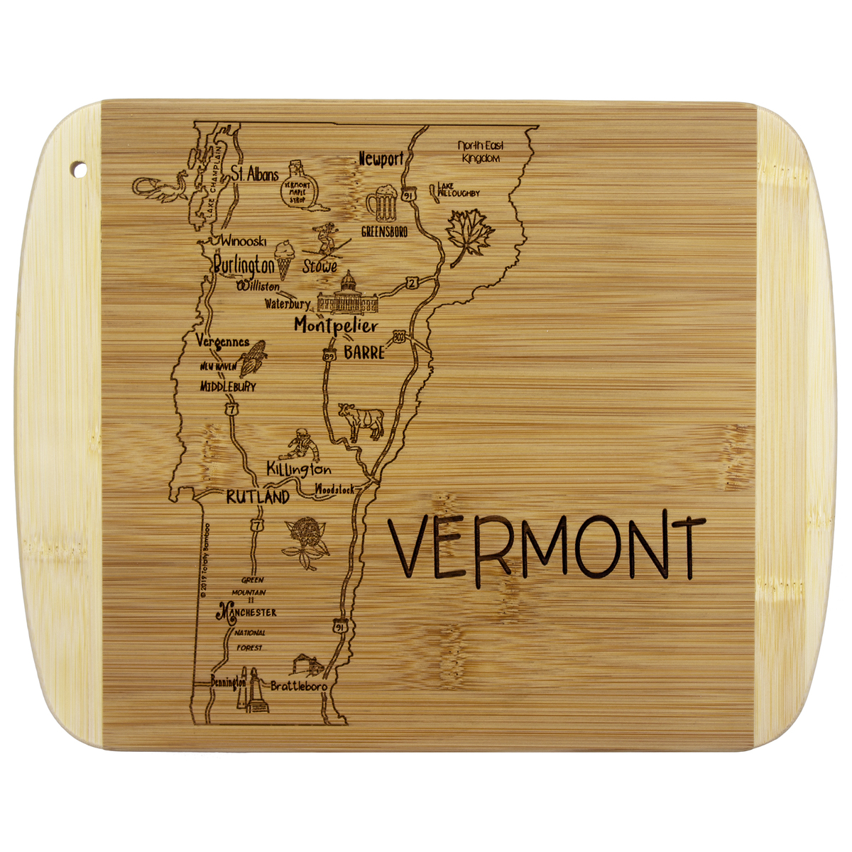 Savor a slice of this State with this beautiful bamboo serving and cutting board with artwork inspired by its cities, places and people. Fun, whimsical artwork features many of the wonderful sights and places. Beautiful flat grain bamboo, laser etched side serves as an ideal serving platter and the reverse smooth side is a great cutting surface; It’s friendly on knives and hand wash only. Bamboo is better for the environment; Moso® bamboo is incredibly durable. Complies with Prop 65. 11″ W x 8 3/4″ H x 1/2″ Thick