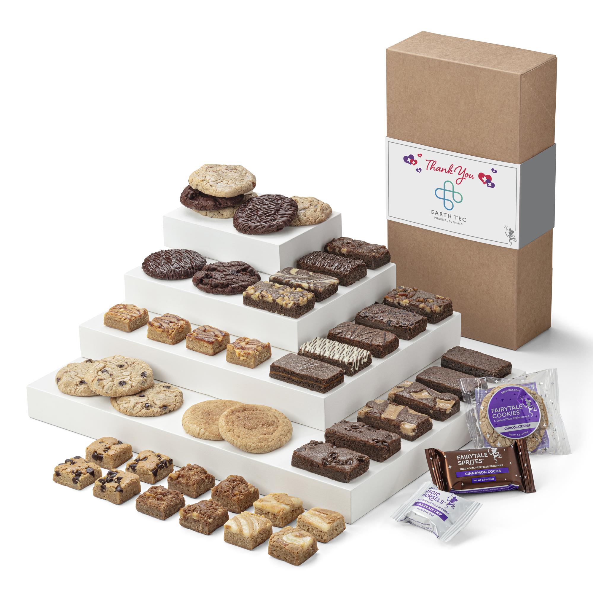 For all the care and support, give back to your favorite nurses and doctors with an enticing assortment of Fairytale Treats delivered with your logo printed front and center on the gift band.This gorgeous Thank You Healthcare gift includes snack-size Fairytale Sprites, chewy Fairytale Cookies, and buttery Fairytale Blondies. Each treat is individually wrapped, all-natural, and certified kosher. Complies with OK. 10 3/4″ L x 7 ./8″ W x 3 3/8″ H