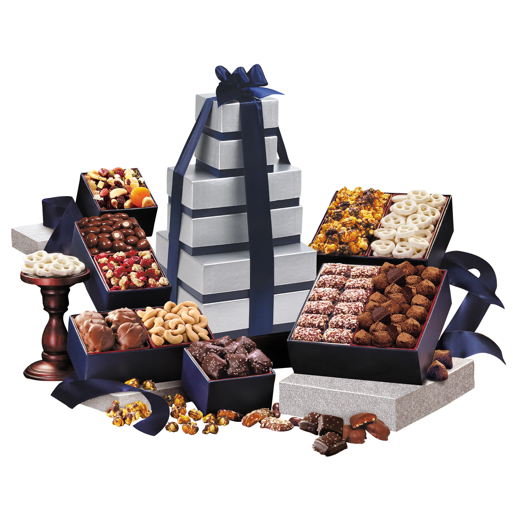 Custom Silver & Navy Executive Gourmet Tower with your company logo